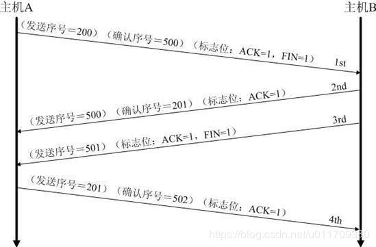 第三次挥手:服务器发送一个FIN,用来关闭服务器到客户端的数据传送,也就是告诉客户端,我的数据也发送完了,不会再给你发数据了。由于在半关闭状态,服务器很可能又发送了一些数据,假定此时的序列号为seq=w,此时,服务器就进入了LAST-ACK(最后确认)状态,等待客户端的确认。