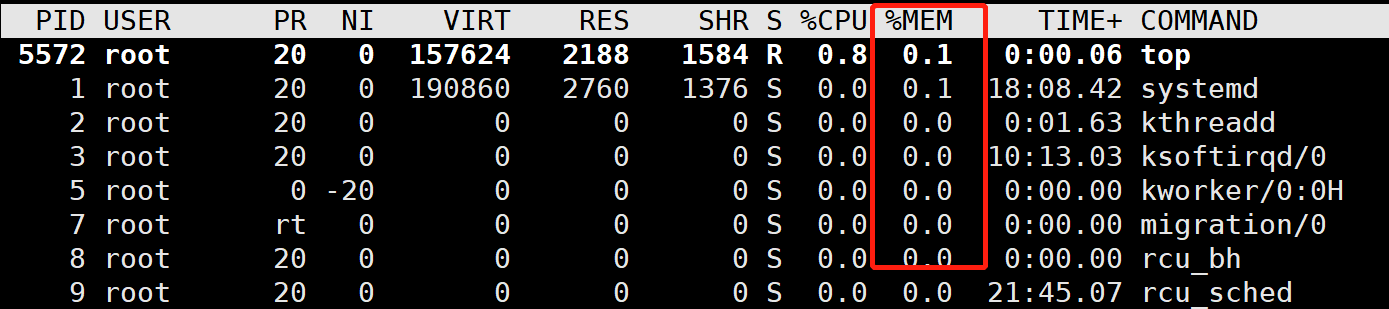 RES:进程使用的、未被换出的物理内存大小,单位kb。