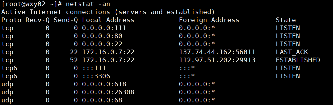 LISTEN :表示服务器端的某个SOCKET处于监听状态,可以接受客户端的连接。