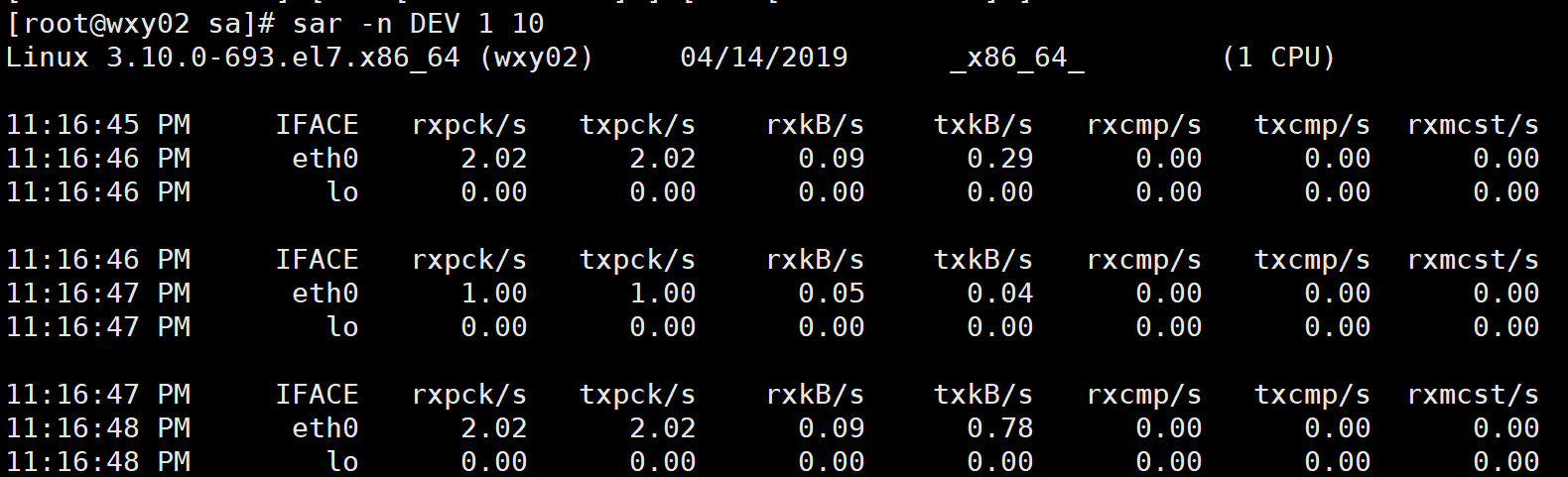sar是一个很全面的监控命令,可以监控cpu、磁盘i/o、网卡流量等。主要用来查看网卡流量和历史的负载信息。