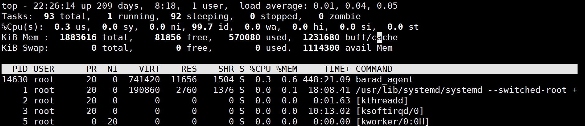 top命令可以动态的查看系统资源使用情况类似于windows下的任务管理器,默认是三秒刷新一次。