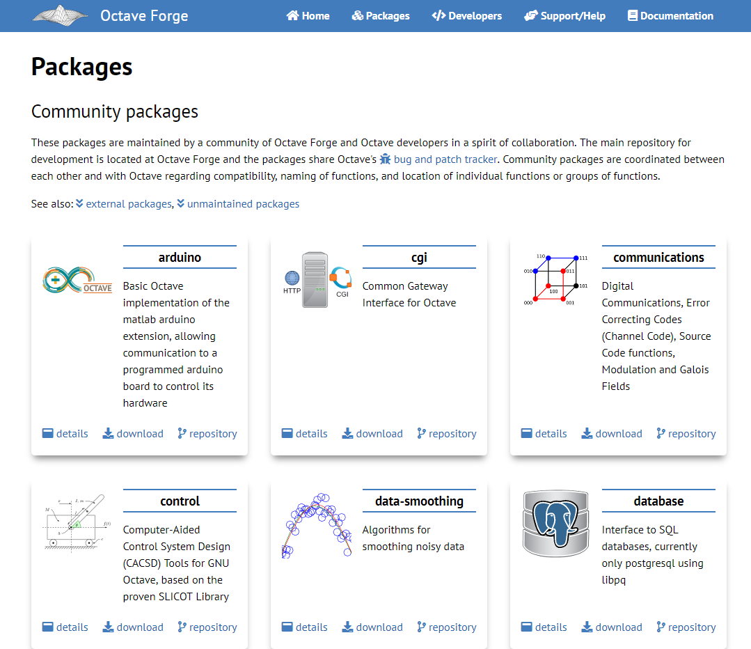 虽然Octave可以替代Matlab,但两者之间还是有区别的。Octave默认的安装包比Matlab更小,所以某些工具以Package形式存在。当用到这些模块再自行导入。