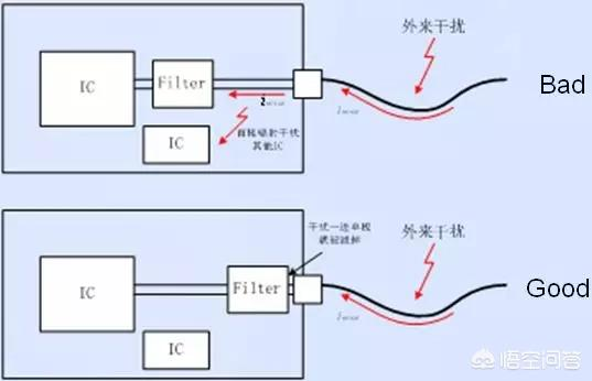 对于时钟线、总线、射频线等强辐射信号线和复位信号线、片选信号线、系统控制信号等敏感信号线,应远离接口外出信号线。从而避免强辐射信号线上的干扰耦合到外出信号线上,向外辐射;也避免接口外出信号线带进来的外来干扰耦合到敏感信号线上,导致系统误操作。