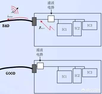 3.线路板电源输入口的滤波电路应应靠近接口放置,避免已经经过了滤波的线路被再次耦合。图8 电源输入口的滤波电路应应靠近接口放置