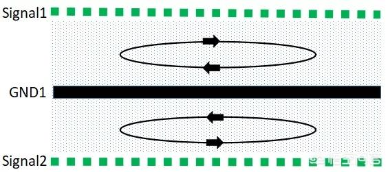磁通对消的本质就是信号回流路径的控制,具体示意图如下: