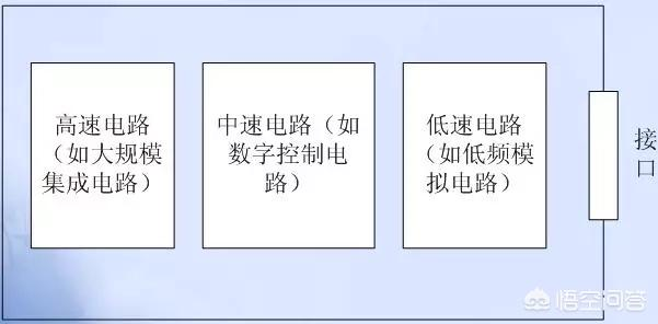 2.多种模块电路在同一PCB上放置时,数字电路与模拟电路、高速与低速电路应分开布局,以避免数字电路、模拟电路、高速电路以及低速电路之间的互相干扰。另外,当线路板上同时存在高、中、低速电路时,为了避免高频电路噪声通过接口向外辐射,应该遵从图7中的布局原则。