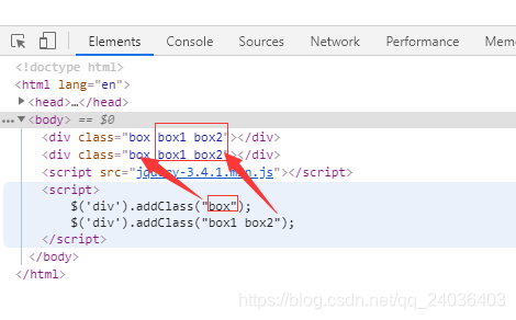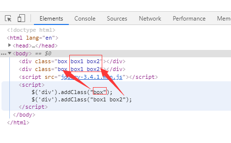 $('div').addClass("box1 box2");