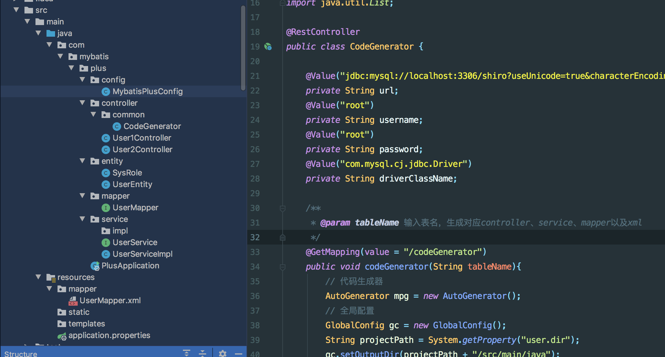 * @param tableName 输入表名,生成对应controller、service、mapper以及xml