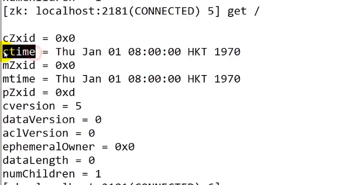 ephemeralOwner = 0x0 代表是 永久节点,如果不是 oxo 就算 临时节点