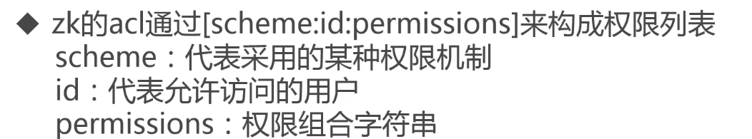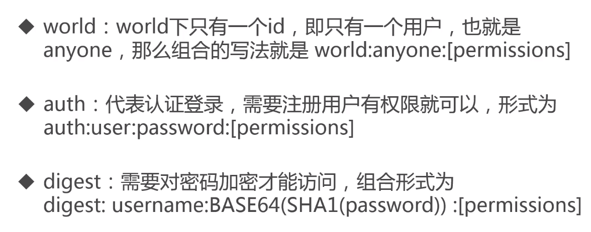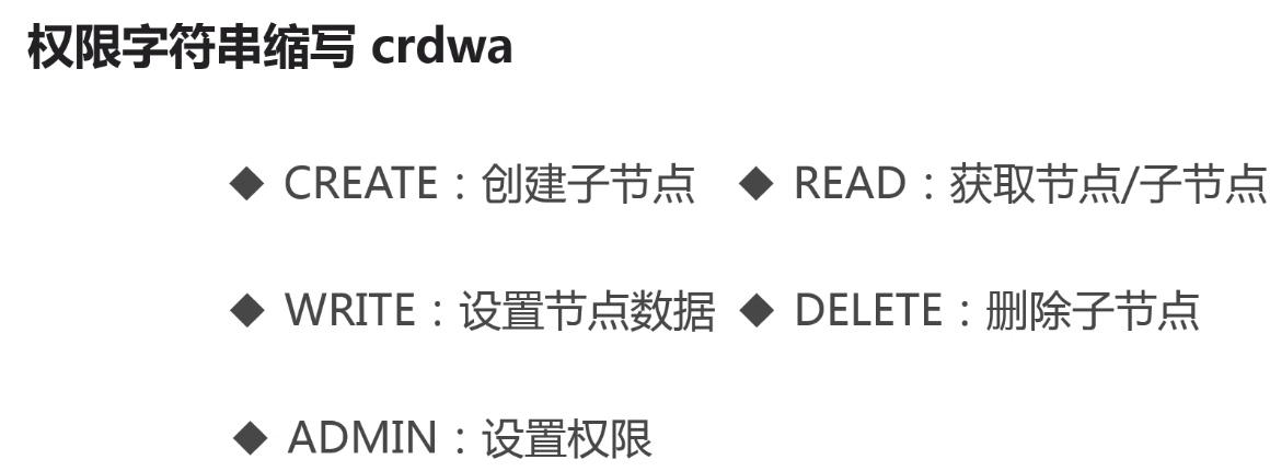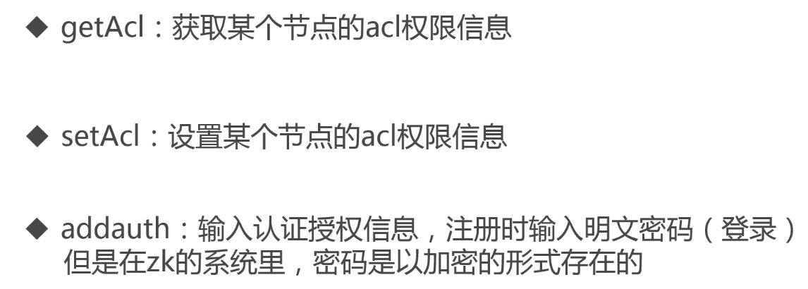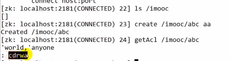 比如 : setAcl /names/im auth:im:im:cdrwa 即 为 路径 /names/im 赋予权限 用户是 im 密码是im ,权限是 增删读写设置的 权限