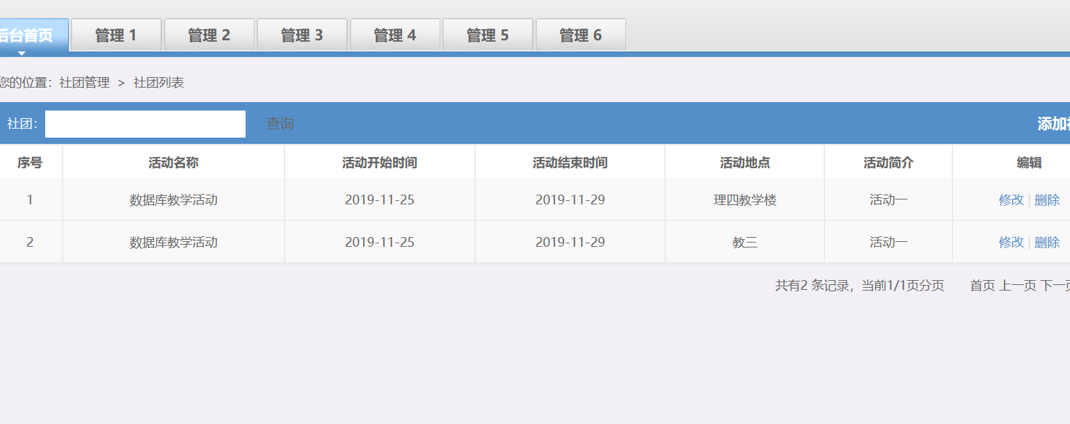 第五组-社团管理系统 原型展示 这是用户的注册和登陆界面 使用用户名密码登陆 首页有社团生活界面,可以一览学校的各大社团和活动公告 进入管理员界面,可以管理管理员信息,及更新密码等 进入用户菜单,可对用户进行管理 点击编辑可对用户信息进行修改管理 进入社团列表可以对社团信息进行管理 可以查询和编辑社团的活动 来源:https://www.cnblogs.com/wuyuhann/p/11973927.html 标签 原型设计