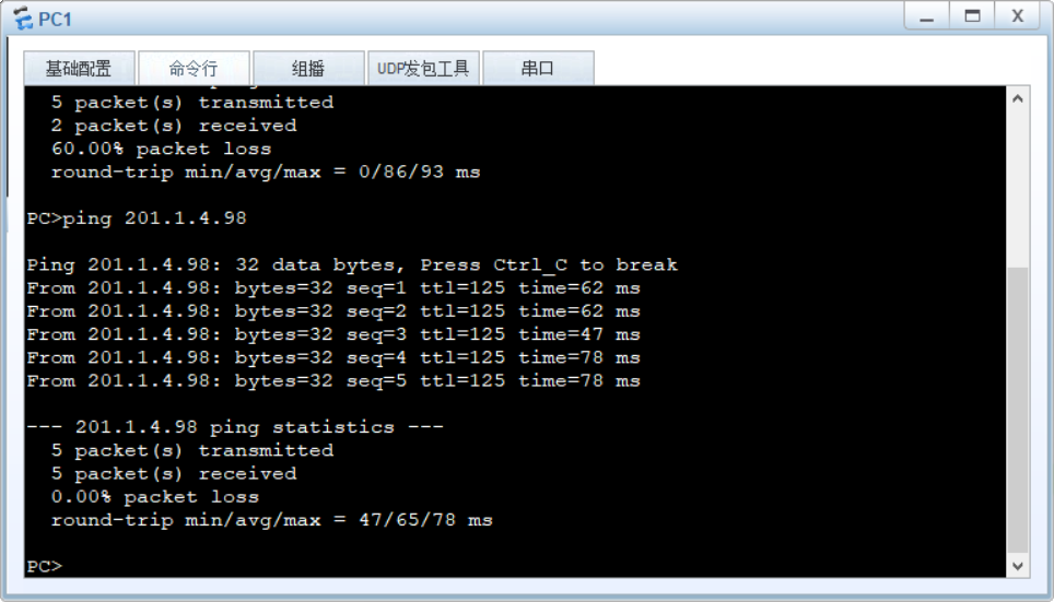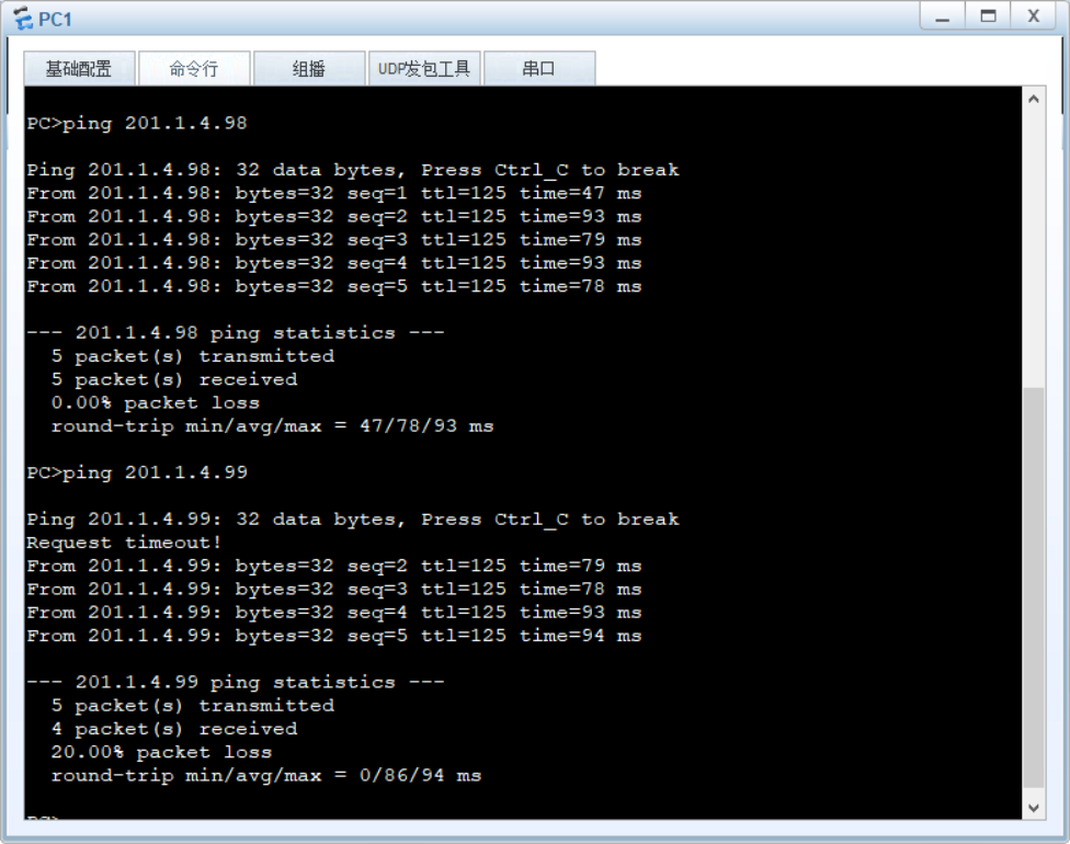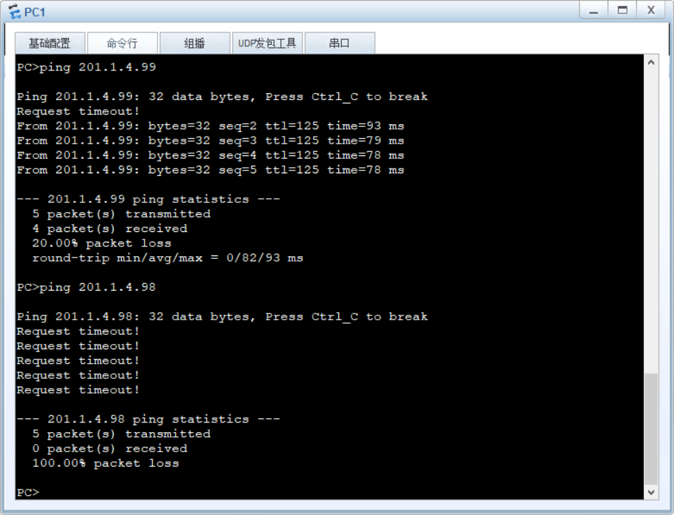 图表 17主机7-3访问失败的同时,利用主机7-1ping主机7-4和7-5,成功