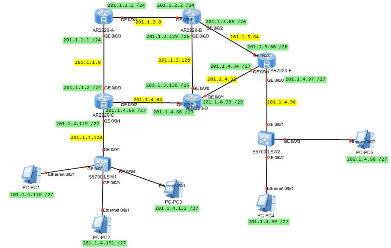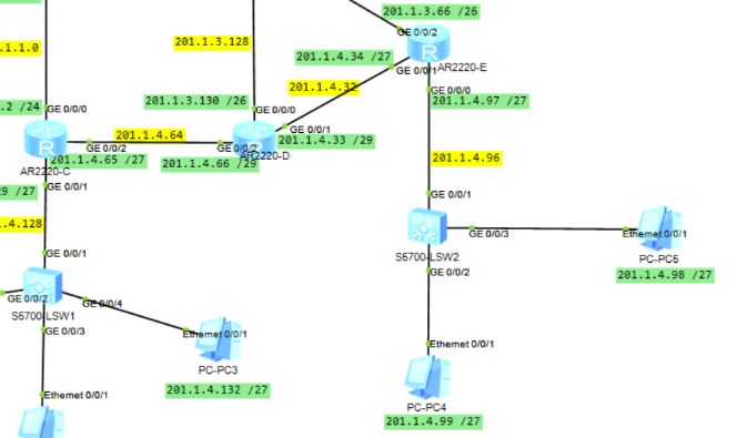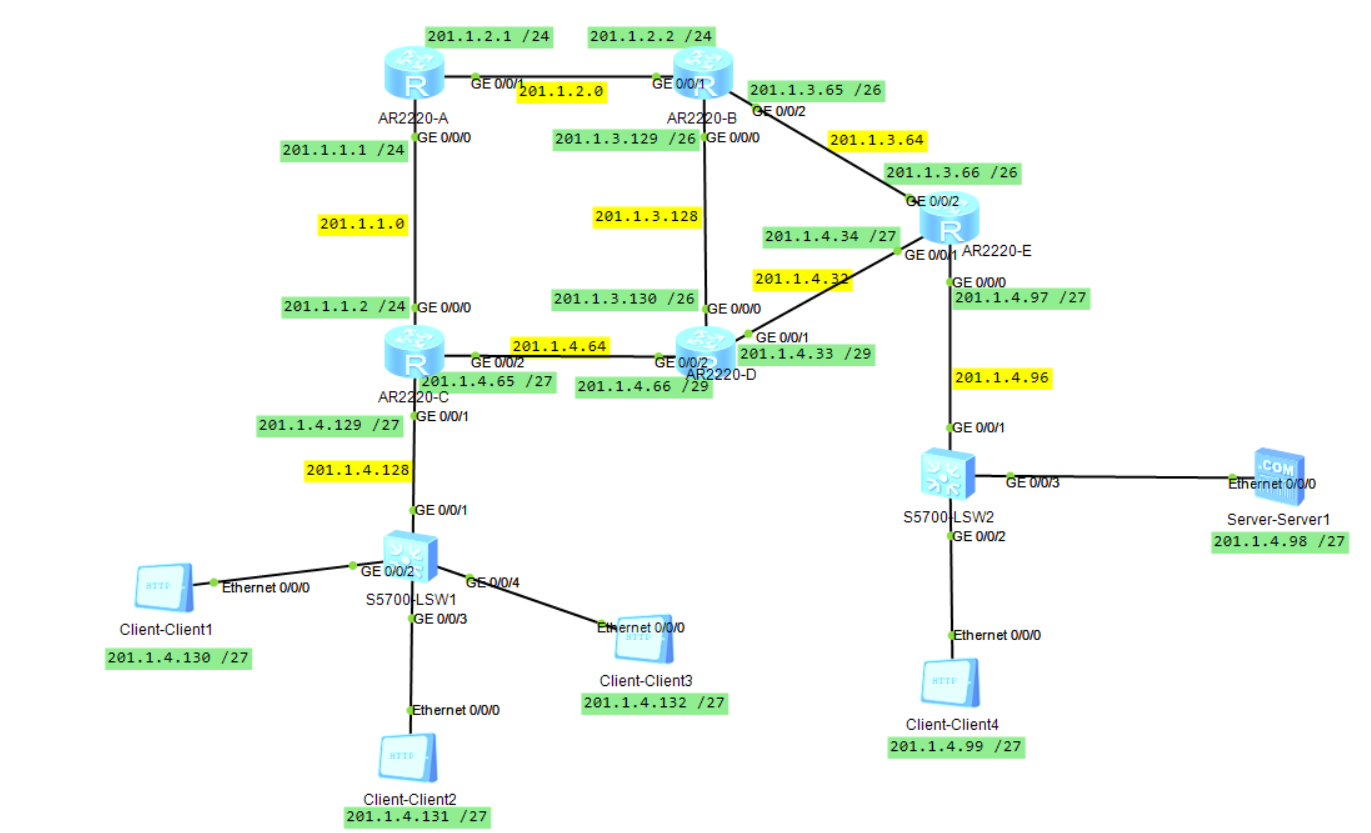 图表 21该实验地址分配与上一实验完全相同,并且将所有的主机换成了ftp客户机与服务器