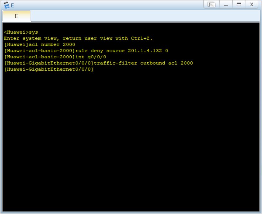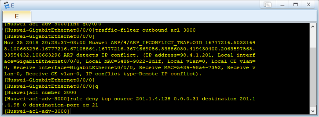 该实验同样设置访问控制列表,与之前实验设置Ee0端口即可。