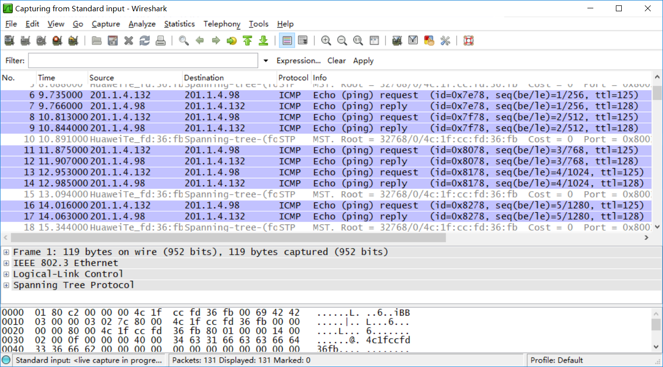 图表 10实验前对拓扑图中红线进行数据抓包,此图为Ee0,(在实验分析中会用到)