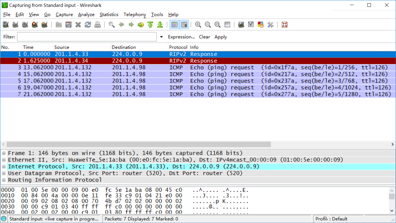 图表 14设置完成后主机7-3再次ping主机7-5,同时进行抓包,此路为Ee1