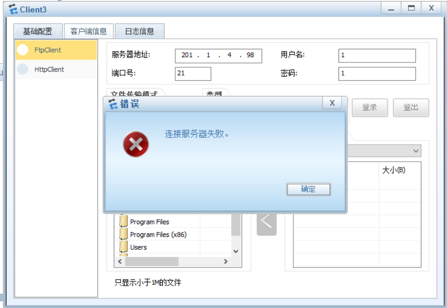图表 27添加限制后客户机7-3无法登陆ftp服务器