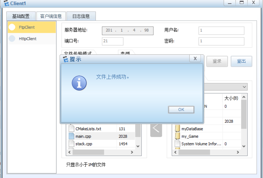 文件上传成功,说明主机能够正长登陆ftp服务器,其余主机截图不再展示。