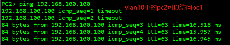 1,vlan10中的主机2能够与主机1相通