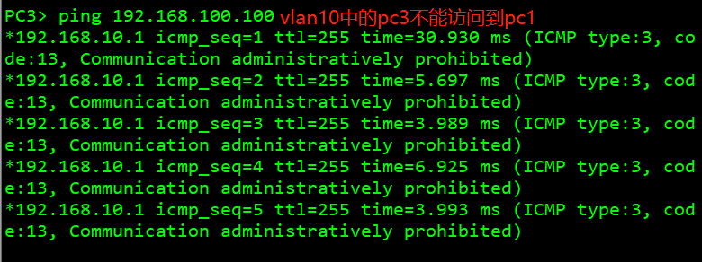 拒绝vlan10中其他访问pc1