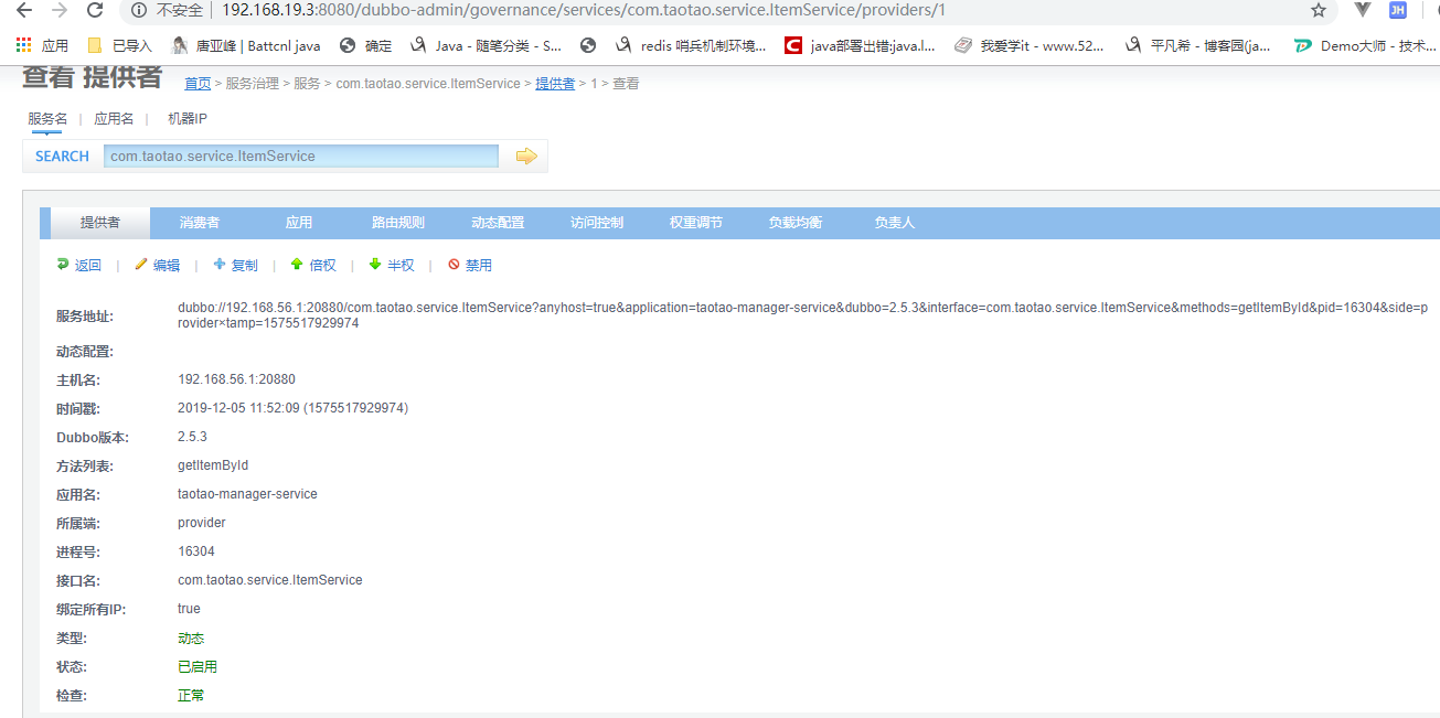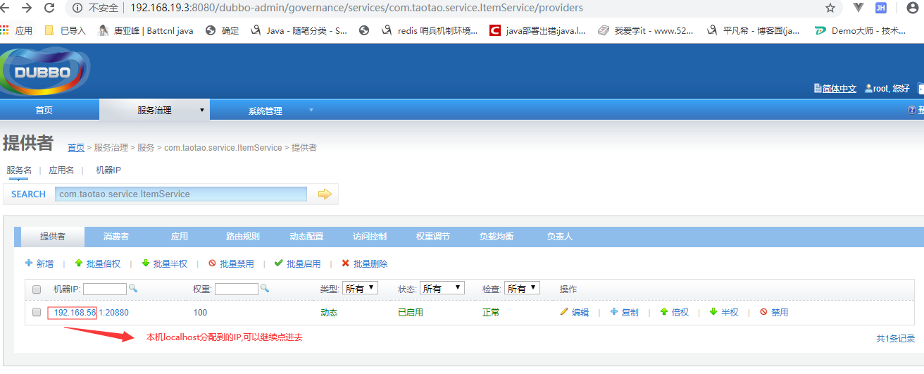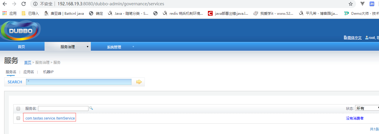 6、服务启动之后,登录网址:http://192.168.19.3:8080/dubbo-admin/