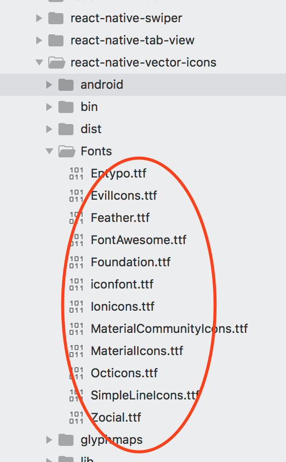 打开android /app/src/main中并创建了assets/fonts的目录 黏贴node_modules/react-native-vector-icons/Fonts的文件