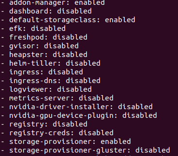 minikube addons list