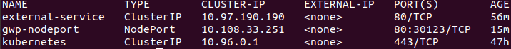 10.108.33.251:80 <1stnode'sIP>:30123 <2stnode'sIP>:30123 等等。