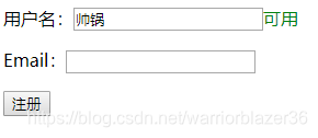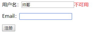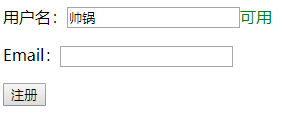 Ajax入门级别的表单验证:比如输入用户名,重复的话会自动弹出不可用的标识。