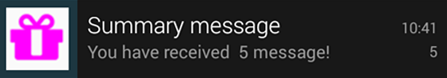 .setContentTitle("Summary message").setContentText("You have received " + count + " message!")