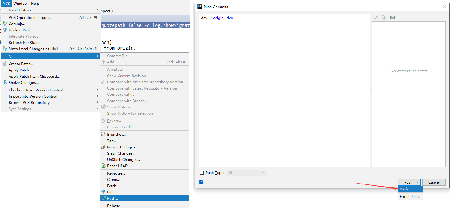 原因:新建了分支,只是在本地存在,需要push。执行:git -c core.quotepath=false -c log.showSignature=false push --progress --porcelain origin refs/heads/dev:dev --set-upstream