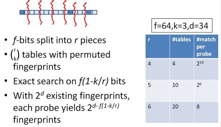 一个simhash需要索引10份,一个集合的大小是2^34 / 2^(26)=256个。