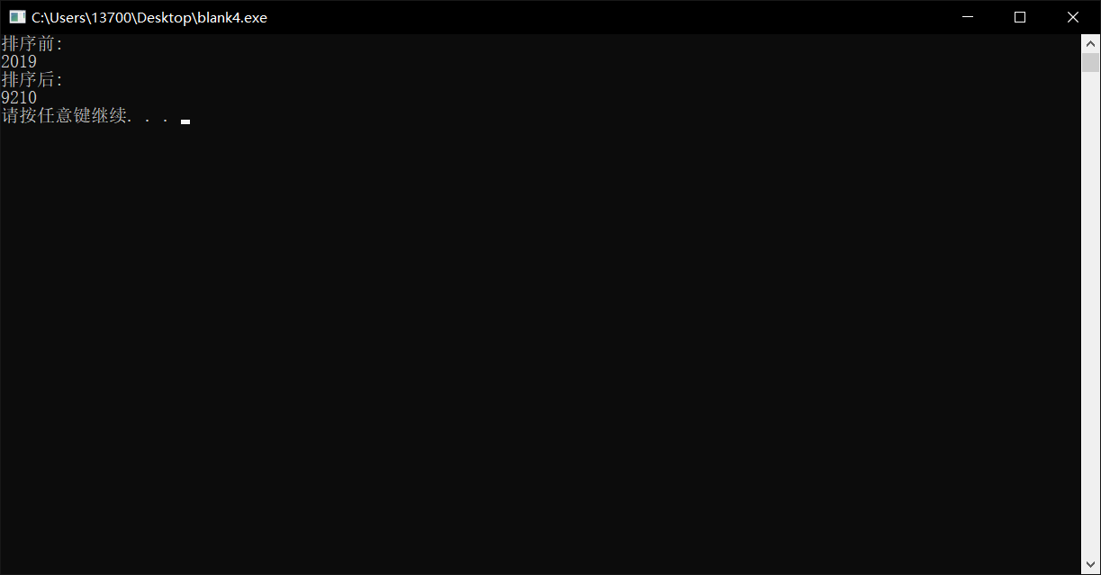 // 调用排序函数对字符数组中的字符由大到小排序