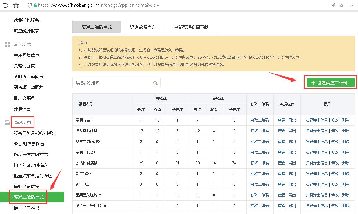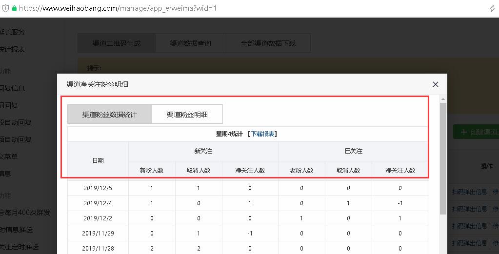 公众号带参数的二维码,通过公众号接口开发,实现公众号粉丝统计,粉丝批量打标签分组或修改备注名,关注取关数据都能统计到,数据每天实时更新。会编程的都可以实现效果,也可以直接用微号帮平台渠道二维码生成实现。