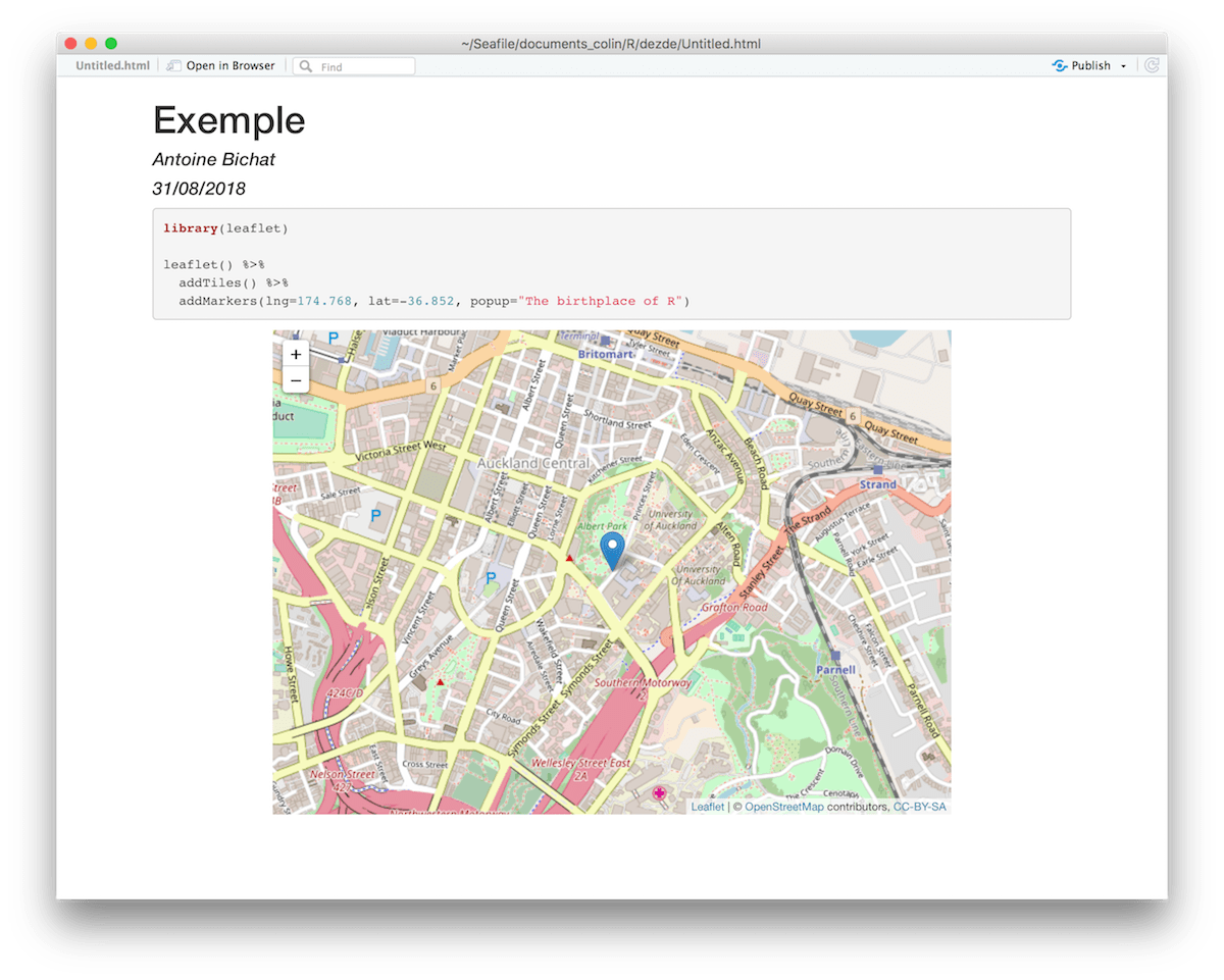 addMarkers(lng=174.768, lat=-36.852, popup="The birthplace of R")