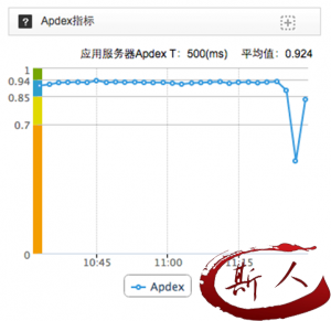 在性能指标中,听云提供了Apdex指数这个重要的性能指标,想了解这个指数的同学可以移步Apdex组织官网(http://apdex.org/)进行深入的了解。我们知道这个指数最重要的是T值的设置和指数数据展示时必须同时展示T值,从图表上来看,听云缺省的应用T值是0.5秒。