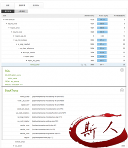 听云Server的Web过程追踪详情可以展示慢的代码调用堆栈和SQL查询语句