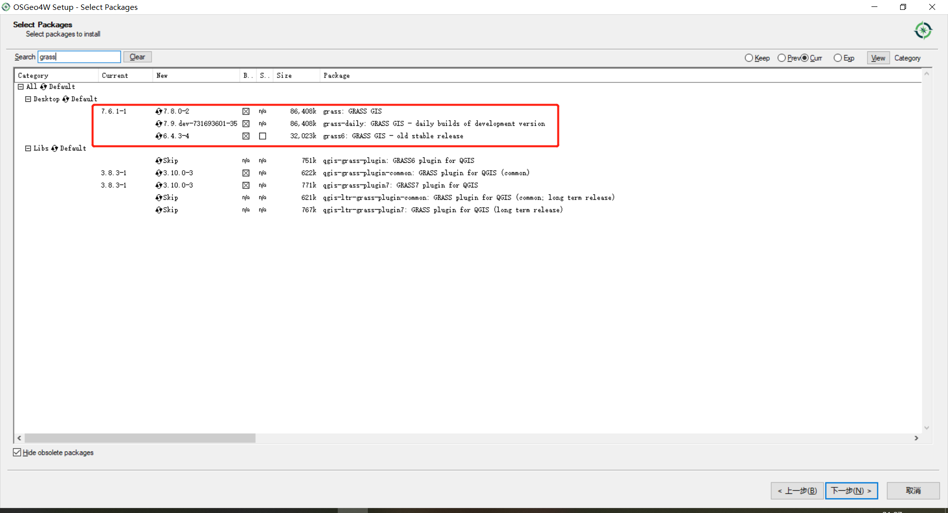 OSGeo4W 全家桶安装GRASS GIS(安装历史或最新版本):