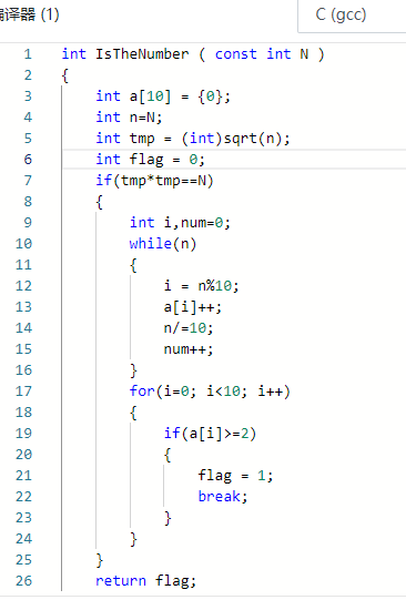 int IsTheNumber ( const int N ); 其中N是用户传入的参数。如果N满足条件,则该函数必须返回1,否则返回0。