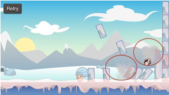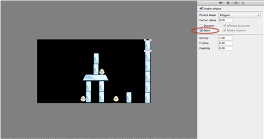 正如你在上面的截图中看到,我已经添加了一些静态的冰块,在我的level的右端,避免企鹅和海豹离开Level: