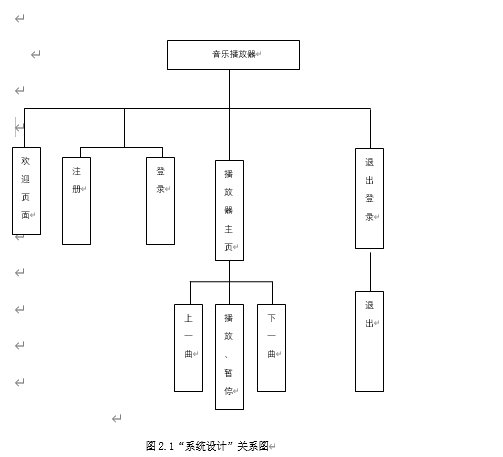 音乐播放器由欢迎页面、注册页面、登录页面、播放器主页、退出登录页面组成。