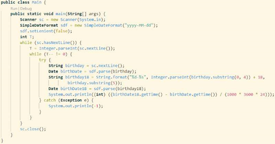 第一题:输入出生日期,判断到18岁时的天数。若没有18岁,则输出-1。