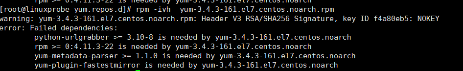[root@Linuxprobe ~]# rpm -ivh yum-3.4.3-161.el7.centos.noarch.rpm