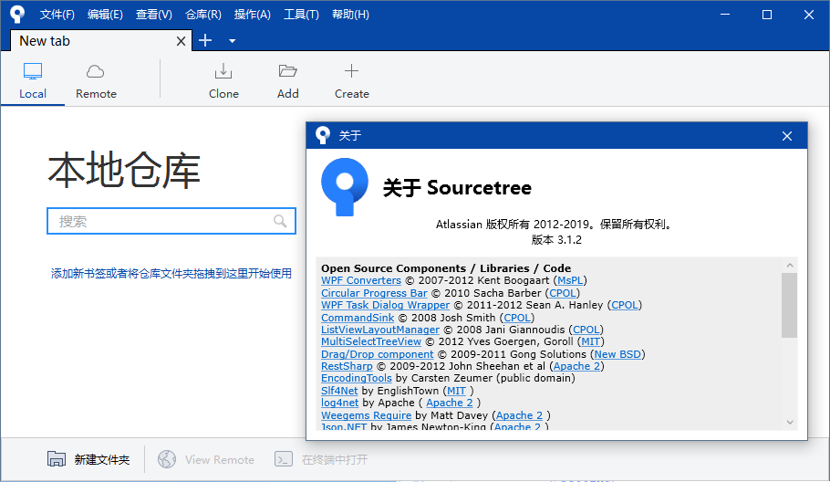 打开 sourcetree,此时的界面如下所示,