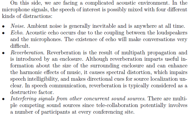 一方面,我们面临着更加复杂的声环境。麦克风接收到的信号,目标语音混杂着以下四种干扰: