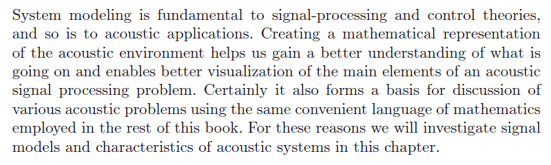系统模型的基础是信号处理和控制理论,以及声应用。创建声信号数学表达式有助于我们更好的理解。