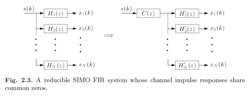 图2.3 一个可约的SIMO的FIR滤波器的系统,通道的冲击响应的零点是相同的