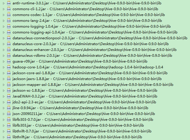 1)HiveParse.java类没有,这个其实是通过HiveParse.g文件产生的,自己编译下0.9.0版本的源码,就可以生成。