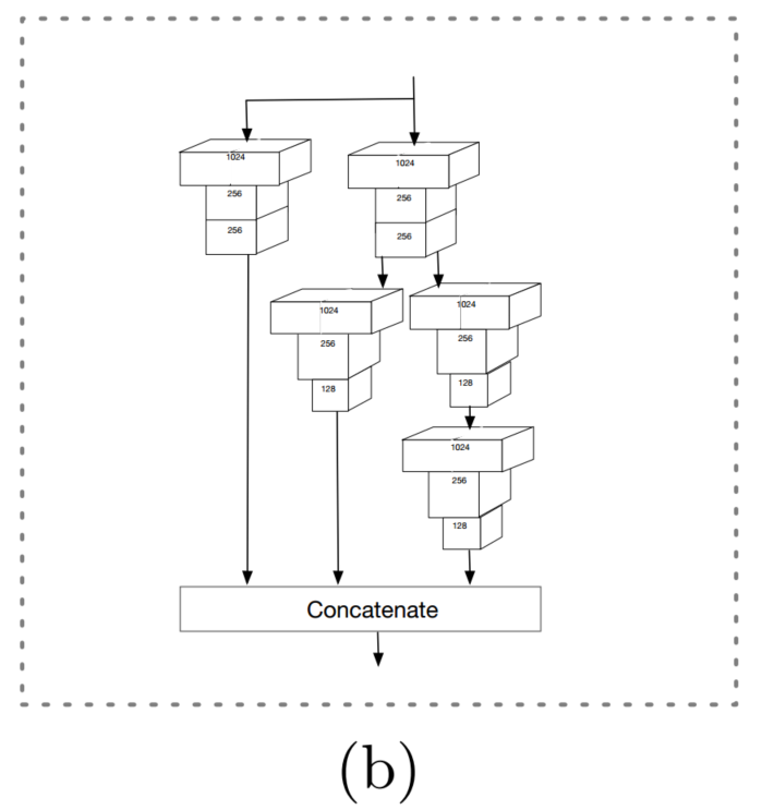 另外我们从中间层自上而下构建了低层特征金字塔网络(LFPN),它的感受野应该接近输入图片尺寸的一半。同样,每个LFPN block结构和FPN是一样的,细节见图三。