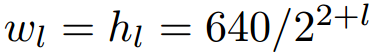 是对应特征图的尺寸,对所有的l=0,1,...,5通道尺寸 cl 等于20。这里,每个通道的特征分别用于人脸,人头和身体的分类与回归。其中人脸分类需要4个通道(cpl+cnl),cpl和cnl分别是前景和背景标签的max-in-out,满足下面公式。